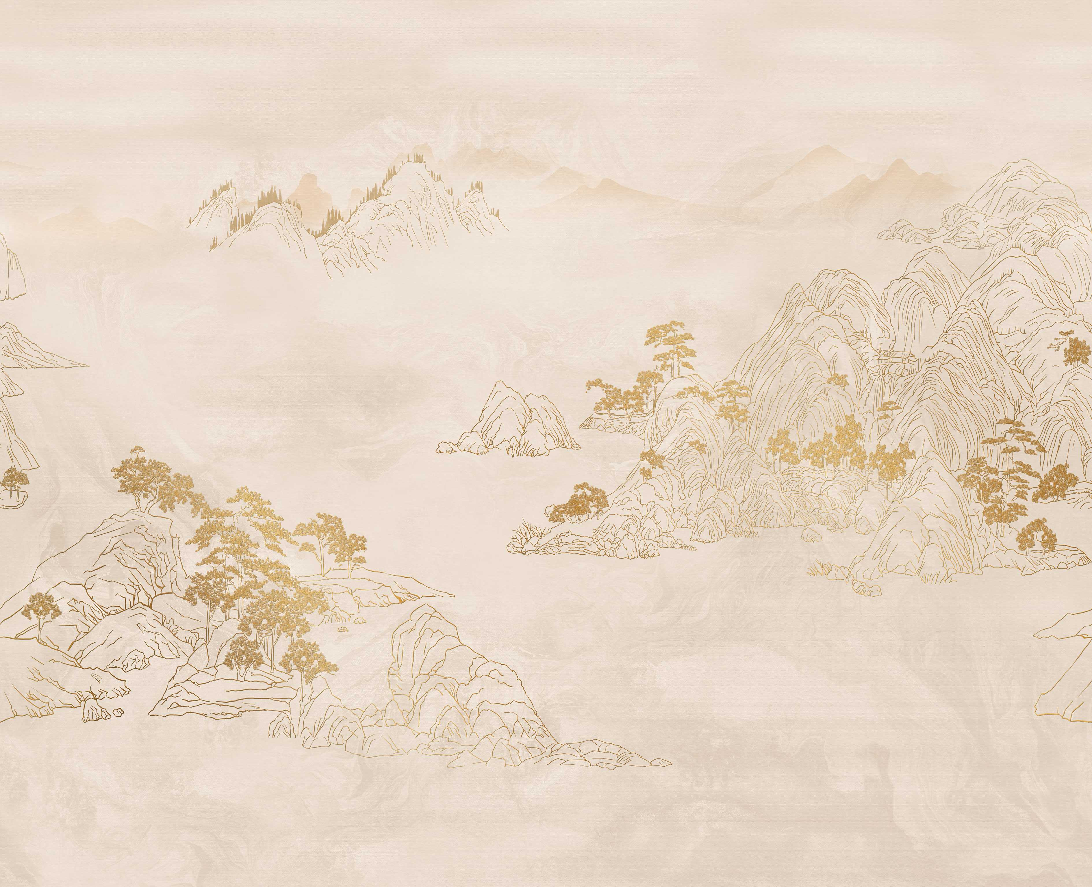 ·山色一片金黄,看上去象一座金山,象征家有金山,大富大贵,松树也寓意身体健康,延年益寿。