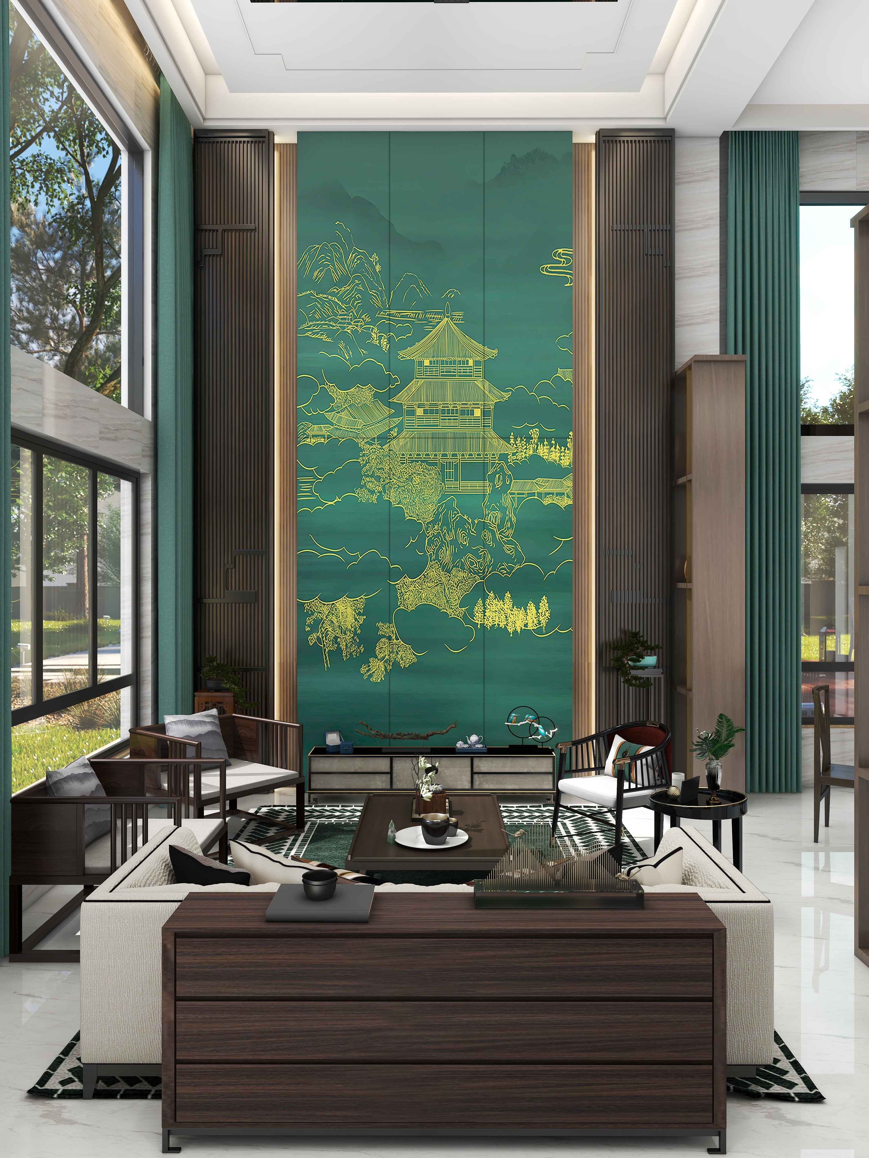《湖心亭眺》创作灵感来杭州西湖湖心亭,湖心亭极目四眺,湖光皆收眼底,群山碧水、亭台楼阁,该产品运用了纳米金边线、悬空浸釉法、三维叠烧法等多项工艺,可以安置在客厅、书房等,仿佛一身疲倦散尽,悠然自得,完美呈现了悠然、内敛的富有文化底蕴的现代中式美。